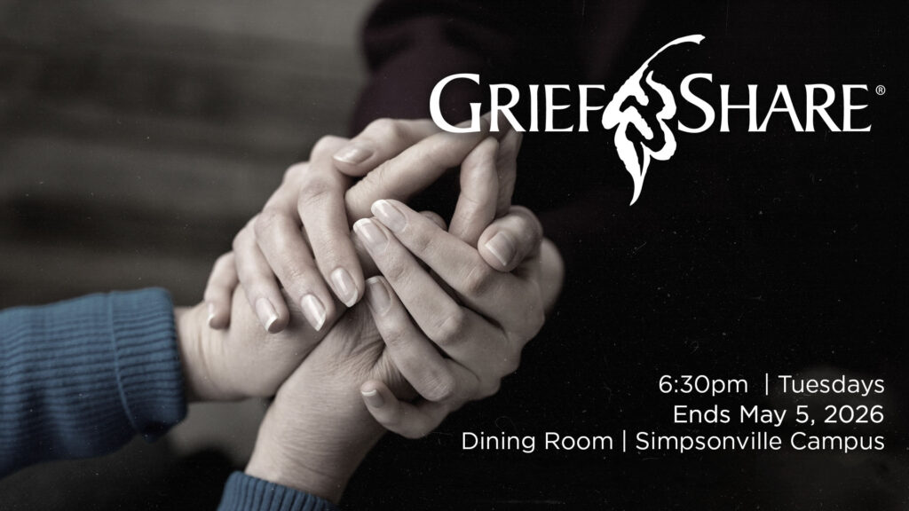 A GriefShare support group is a safe place where people understand the difficult emotions of grief. Through this 13-week group, you will discover what to expect in the days ahead and what’s normal in grief. We meet in the Dining Room at our Simpsonville Campus.