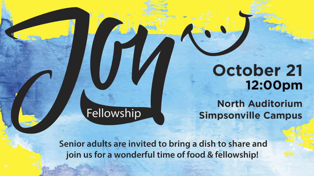 We are looking forward to Oasis Southern Gospel group from Newberry, SC. This will be a musical blessing for all of us in Joy Fellowship. Come and be a part of this special time of good food, fellowship and music this month. Everyone 55+ is welcome to join us. We would love to see you there!
