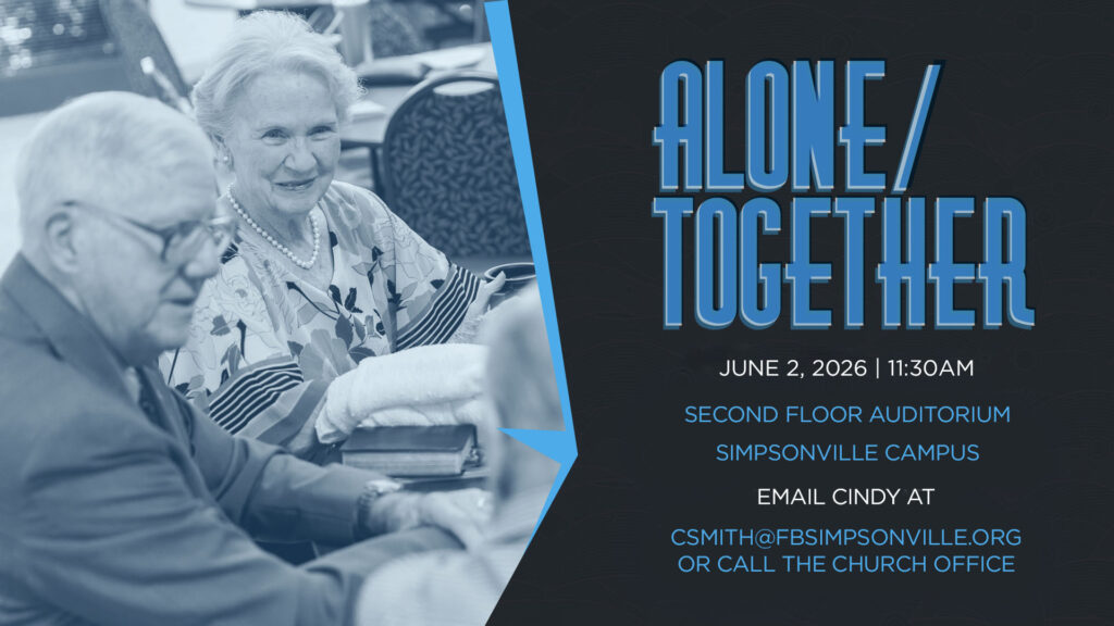 All Senior Adult members who are single, widowed, or divorced are invited to this luncheon. We’ll enjoy a catered lunch and some time spent with others in your same status in life. Cost is $10 and can be paid at the door. To reserve your seat, call the church office or email Cindy at [email protected].