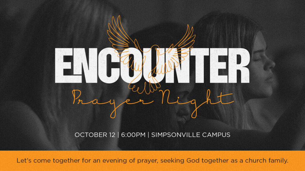 Let’s come together for an evening of prayer, seeking God together as a church family. This will be a time for us to pray specifically for God to use the next 2 years as we walk through our Encounter initiative at Upstate Church. We are expectant to see how God will work through each of us to transform lives and to reach the Upstate for Christ. Special Kids Worship is available for birth – 5th grade.